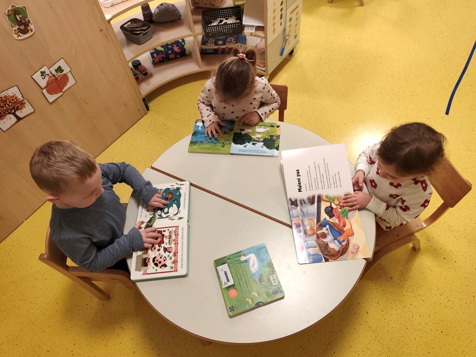 Veliko zanimanje djeca su pokazala za slikovnice na temu farme. Čitali smo i listali slikovnice poput „Psić i ostale priče“, „Selo“ i „Dan na farmi“ proširujući rječnik i potičući razumijevanje priče.